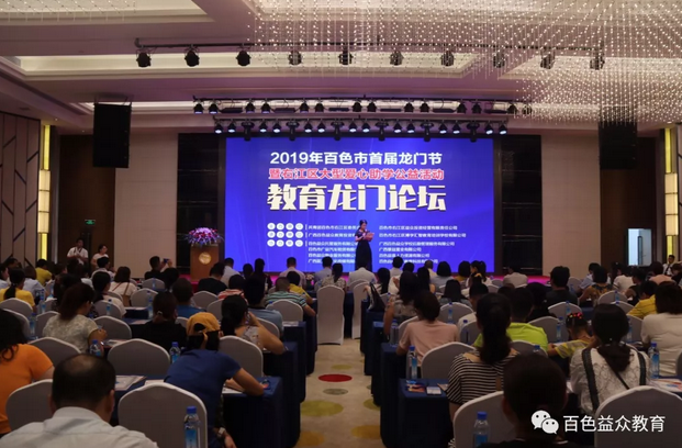 2019年6月16日下午,百色市首屆龍門節(jié)暨右江區(qū)大型愛心助學(xué)第一場公益活動(dòng)—教育龍門論壇的舉行,拉開了百色市首屆龍門節(jié)公益活動(dòng)的帷幕。本次論壇由共青團(tuán)百色市右江區(qū)委員會(huì)、百色市右江區(qū)益眾投資經(jīng)營有限責(zé)任公司聯(lián)合主辦,百色市右江區(qū)博學(xué)匯智教育培訓(xùn)學(xué)校有限公司、廣西百色益眾教育投資有限公司聯(lián)合承辦。教育無小事,論壇也得到了各級領(lǐng)導(dǎo)的極大重視。右江區(qū)區(qū)委常委、組織部部長張彩昊,右江區(qū)人民政府辦公室副主任譚再規(guī),右江區(qū)教育局副局長蔣傳剛,共青團(tuán)百色市右江區(qū)委員會(huì)副書記姚賢玉,百色市右江區(qū)益眾投資經(jīng)營有限責(zé)任公司總經(jīng)理趙家臣參加了本次論壇。參加本次論壇的還有右江區(qū)10所小學(xué)的校長、學(xué)校代表。論壇得到了家長熱烈歡迎,到場家長約500人。
