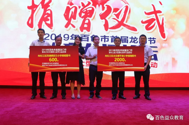 論壇還進(jìn)行了圖書捐贈(zèng)儀式,捐贈(zèng)的圖書來自于龍門節(jié)另一個(gè)公益活動(dòng)—龍門書友會(huì)活動(dòng),所有捐贈(zèng)圖書均來自于同學(xué)們置換的閑置書籍。置換的書籍統(tǒng)一由共青團(tuán)百色市右江區(qū)委員會(huì)捐贈(zèng)給右江區(qū)偏遠(yuǎn)的貧困小學(xué),捐贈(zèng)書本數(shù)量以在校學(xué)生人數(shù)為依據(jù)。本次龍門書友會(huì)共置換到圖書約9000本,當(dāng)天作為獲贈(zèng)方代表,右江區(qū)永樂鎮(zhèn)平塘小學(xué)和右江區(qū)四塘鎮(zhèn)百蘭小學(xué)校長出席論壇并接受圖書捐贈(zèng)。這不僅是一次知識的傳遞,更是一次愛心的流動(dòng)。