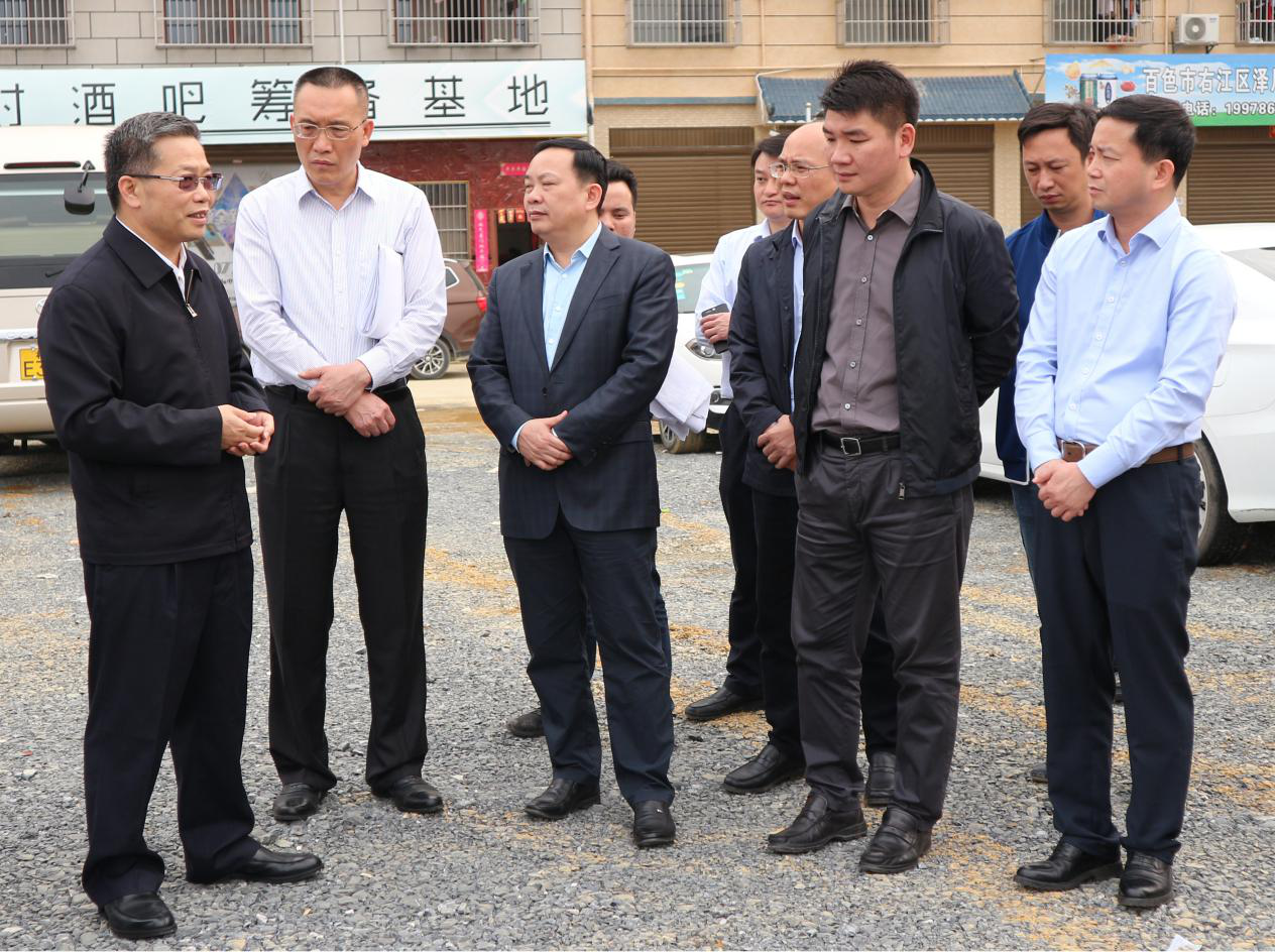 ??? 自治區(qū)政協(xié)副主席、百色市委書記、百色市人大常委會主任彭曉春一行到公司負(fù)責(zé)的棚戶區(qū)改造項目檢查工作進展情況,百色市委秘書長藍樹東、右江區(qū)委書記黃永才、公司經(jīng)營管理指導(dǎo)工作小組組長李勇春等領(lǐng)導(dǎo)陪同。?(通訊員:金彥彤)