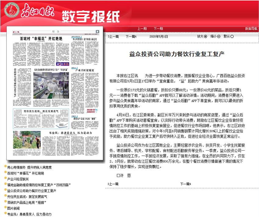 益眾投資公司助力餐飲行業(yè)復(fù)工復(fù)產(chǎn)