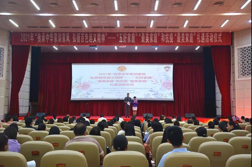 ????????為弘揚中華民族家庭美德、樹立良好家風、激勵抗疫精神,落實全國婦聯(lián)、自治區(qū)婦聯(lián)關于開展尋找“最美家庭”活動精神。4月30日,由百色市婦聯(lián)、市文明辦、市總工會、市教育局聯(lián)合舉辦,廣西益眾文化傳媒有限公司承辦的2021年“傳承中華家訓家風?弘揚百色起義精神”——“五好家庭”“最美家庭”和抗疫“最美家庭”禮遇活動儀式在右江區(qū)禮堂舉行。來自2020年“五好家庭”“最美家庭”和抗疫“最美家庭”代表、“最美家庭”禮遇愛心單位代表以及百色市市直機關、企事業(yè)單位和社會各界代表等共計200多人參加活動。