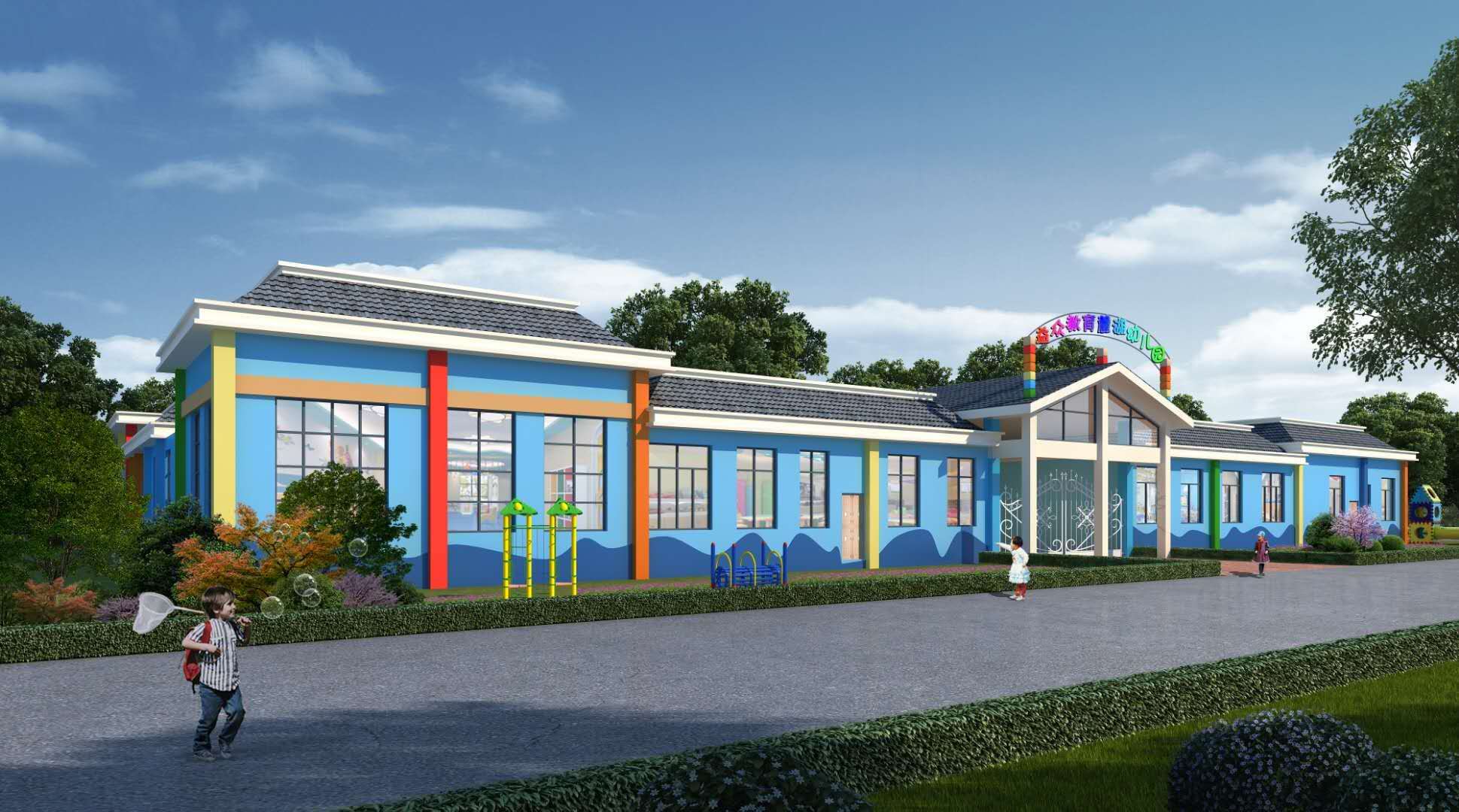 ????????益眾教育麓湖幼兒園位于百色市右江區(qū)百林小學旁,園舍建筑面積2844平方米,實行小班化教學,計劃2020年秋季學期開園。按照公辦幼兒園的標準,目前該園已完成全部的整體布局及外觀裝修工作,正在進行園區(qū)教室室內(nèi)裝飾布置。