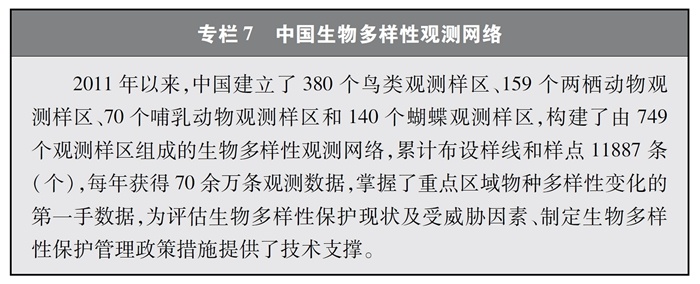 完善監(jiān)測觀測網絡。中國建立起各類生態(tài)系統、物種的監(jiān)測觀測網絡,在生物多樣性理論研究、技術示范與推廣以及物種與生境保護方面發(fā)揮了重要作用,為科研、教育、科普、生產等各領域提供了多樣化的信息服務與決策支持。其中,中國生態(tài)系統研究網絡(CERN)、國家陸地生態(tài)系統定位觀測研究網絡(CTERN)涵蓋所有生態(tài)系統和要素,中國生物多樣性監(jiān)測與研究網絡(Sino BON)覆蓋動物、植物、微生物等多種生物類群,中國生物多樣性觀測網絡(China BON)構建了覆蓋全國的指示物種類群觀測樣區(qū)。