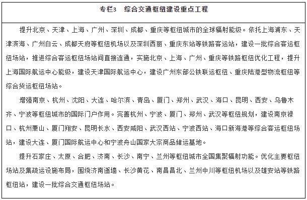 優(yōu)化綜合交通樞紐城市功能。提升國際性綜合交通樞紐的全球聯(lián)通水平和資源要素配置能力,增強部分樞紐國際門戶功能。優(yōu)化全國性綜合交通樞紐客貨中轉(zhuǎn)設(shè)施、集疏運網(wǎng)絡(luò)及客運場站間快速連接系統(tǒng)。增強區(qū)域性綜合交通樞紐的銜接轉(zhuǎn)運能力,發(fā)展口岸樞紐。強化不同層級綜合交通樞紐城市之間功能互補、設(shè)施連通、運行協(xié)同。