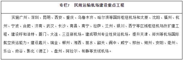 擴大航空網(wǎng)絡(luò)覆蓋。推動區(qū)域機場群協(xié)同發(fā)展,建設(shè)京津冀、長三角、粵港澳大灣區(qū)、成渝等世界級機場群。適時啟動能力緊張樞紐機場改擴建工程,強化樞紐機場綜合保障能力。合理加密機場布局,穩(wěn)步建設(shè)支線機場和專業(yè)性貨運樞紐機場,提升綜合性機場貨運能力和利用率。有序推進(jìn)通用機場規(guī)劃建設(shè),構(gòu)建區(qū)域短途運輸網(wǎng)絡(luò),探索通用航空與低空旅游、應(yīng)急救援、醫(yī)療救護、警務(wù)航空等融合發(fā)展。優(yōu)化航路航線網(wǎng)絡(luò),加強軍民航空管基礎(chǔ)設(shè)施建設(shè),推廣應(yīng)用空管新技術(shù)。