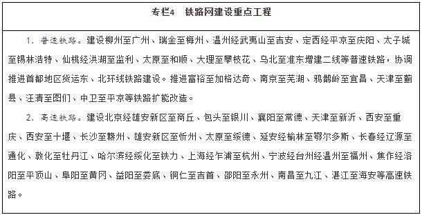 建設(shè)現(xiàn)代化鐵路網(wǎng)。堅持客貨并重、新建改建并舉、高速普速協(xié)調(diào)發(fā)展,加快普速鐵路建設(shè)和既有鐵路擴能改造,著力消除干線瓶頸,推進(jìn)既有鐵路運能緊張路段能力補強,加快提高中西部地區(qū)鐵路網(wǎng)覆蓋水平。加強資源富集區(qū)、人口相對密集脫貧地區(qū)的開發(fā)性鐵路和支線鐵路建設(shè)。推進(jìn)高速鐵路主通道建設(shè),提升沿江、沿海、呼南、京昆等重要通道以及京滬高鐵輔助通道運輸能力,有序建設(shè)區(qū)域連接線。綜合運用新技術(shù)手段,改革創(chuàng)新經(jīng)營管理模式,提高鐵路網(wǎng)整體運營效率。統(tǒng)籌考慮運輸需求和效益,合理規(guī)劃建設(shè)鐵路項目,嚴(yán)控高速鐵路平行線路建設(shè)。