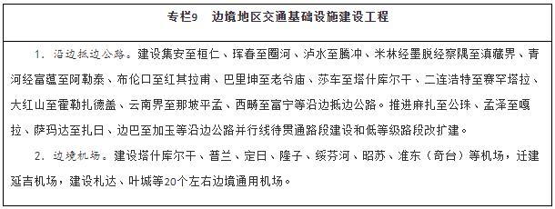 服務(wù)沿邊城鎮(zhèn)體系建設(shè),以公路、機場為重點,大力改善邊境地區(qū)交通出行條件,提升邊境城鎮(zhèn)人口集聚能力。統(tǒng)籌推進(jìn)邊境地區(qū)國省干線公路、農(nóng)村公路等建設(shè),全面完善國道干線主骨架,推進(jìn)沿邊公路并行線建設(shè)和低等級公路提質(zhì)改造,加快抵邊公路建設(shè),盡快形成層次清晰、結(jié)構(gòu)合理的沿邊公路網(wǎng)。穩(wěn)步推進(jìn)邊境地區(qū)機場建設(shè),構(gòu)建多層級航空網(wǎng),擴大航空運輸服務(wù)覆蓋面。補強同江、二連浩特、阿拉山口、霍爾果斯、瑞麗、磨憨等口岸后方鐵路通道能力。加強抵邊自然村郵政設(shè)施建設(shè),實現(xiàn)郵政服務(wù)普遍覆蓋。