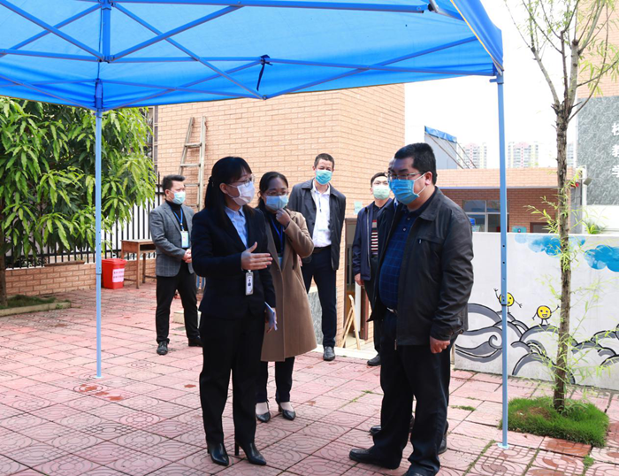 4月3日下午,右江區(qū)政協(xié)主席周文任到我公司下屬益眾托管公司第十小學(xué)校區(qū)檢查開(kāi)學(xué)前疫情防控的準(zhǔn)備工作情況。右江區(qū)委常委、宣傳部部長(zhǎng)、副區(qū)長(zhǎng)王世凡,區(qū)政協(xié)辦公室主任王天躍、區(qū)教育局局長(zhǎng)蘇祖勝、第十小學(xué)及益眾公司相關(guān)負(fù)責(zé)人陪同檢查。
